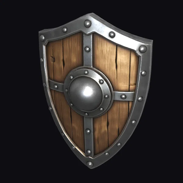 Crafted with meticulous attention to detail, this shield boasts a richly textured wooden surface, complete with visible grain and rivets that add a touch of authenticity. The metal rim and central boss are adorned with rivets, lending an air of ruggedness to this defensive masterpiece. Whether you’re a game developer, animator, or designer, this shield is sure to add a touch of realism to your project. Imagine it standing proudly in a medieval landscape, or being wielded by a brave warrior in a scene of epic battle.