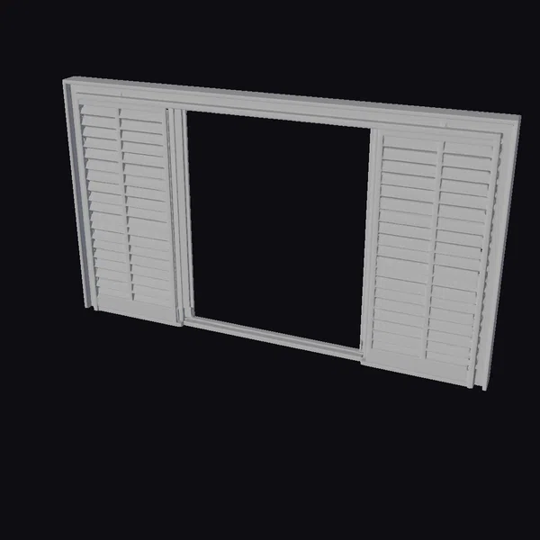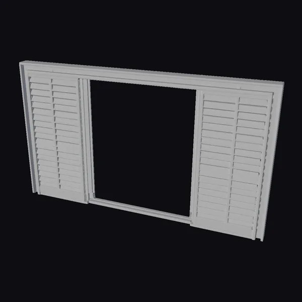 Detailed with precision, this wooden shutter frame features two sections of horizontal slats on either side of a central frame, all set within a sleek black border. The slats exhibit a warm, light brown hue, suggesting a well-weathered wood finish. The frame’s design allows for a blank center panel, perfect for customization. Its realistic appearance makes it an ideal choice for architectural visualizations, interior design projects, or any creative endeavor requiring authentic detailing. Whether you’re working on a 3D model for a game, animation, or architectural presentation, this shutter frame adds a touch of realism and sophistication.