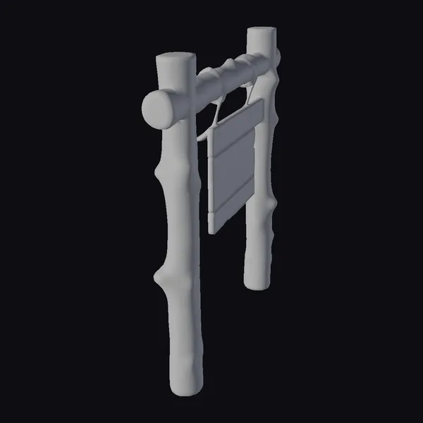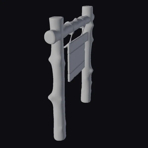 Crafted with attention to detail, this wooden sign post boasts a natural, unfinished look that adds warmth to any environment. The post and beam are adorned with a slatted wooden sign, suspended by a sturdy leather strap. The wood grain texture and knots are meticulously rendered, giving the model a lifelike appearance. Ideal for use in games, architectural visualizations, or 3D printing, this model can serve as a unique decorative element or a functional sign post in various projects.