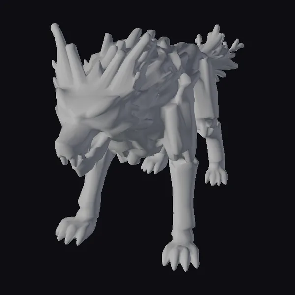 Positioned in a threatening stance, this wooden timber wolf showcases intricate details such as glowing green eyes, sharp teeth, and claws. The body is composed of dark brown wooden planks and branches, creating a sturdy yet organic structure. The wooden texture and glowing accents evoke a sense of mysticism and fantasy. Ideal for use in games, animations, or designs requiring a mythical creature with a dark, aggressive vibe. The model’s unique wooden composition and eerie glow make it a standout addition to any fantasy setting.
