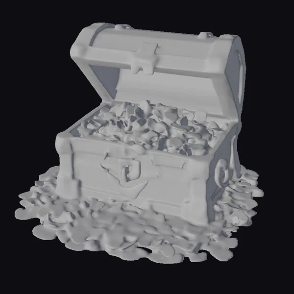 Crafted with meticulous attention to detail, this wooden treasure chest boasts a rich, warm brown hue with hints of wear and tear, suggesting a storied past. The chest’s lid is ajar, revealing a hoard of glittering jewels and gold coins that seem to spill out onto the ground. The anchor emblem on the front adds a touch of whimsy, while the scattered coins surrounding the chest create a sense of dynamic movement. This model is perfect for use in games, 3D printing, VR/AR experiences, animation, and design projects, offering a wealth of creative possibilities.
