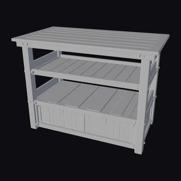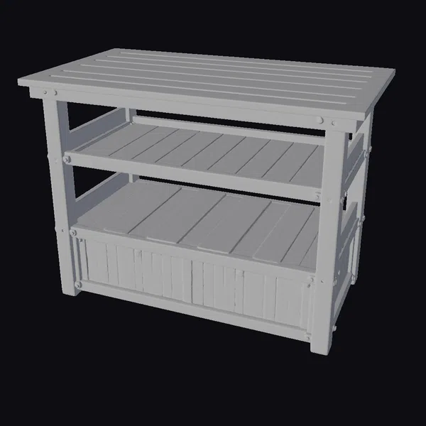 Imagine standing amidst the bustling stalls of a medieval market, surrounded by the sights and smells of fresh produce and handmade crafts. This wooden two-tier market stand is meticulously designed to transport you to a bygone era. The slatted wooden top and shelves are supported by sturdy legs and frame, with a lower section that could be used for storage. The entire structure is modular and tileable, making it an ideal piece for game developers, architects, and designers looking to create immersive environments. Whether you’re working on a historical drama, a fantasy RPG, or a architectural visualization, this stand adds a touch of realism and authenticity. Its detailed texture and color bring a sense of warmth and coziness, inviting users to explore and interact.