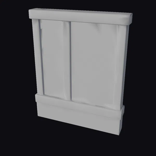 Perched at a slight angle, the wooden wall panel showcases its intricate details, from the dark brown trim that frames the lighter brown wooden sections, to the stone base that adds a sense of solidity and grounding. The texture of the wood, with its subtle grain and imperfections, invites the viewer to take a closer look. The panel’s rustic charm makes it an ideal addition to various projects, such as game environments, architectural visualizations, or even 3D printing. Its earthy tones and natural materials can bring warmth and coziness to any scene, from a virtual interior design to an animated film.