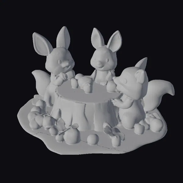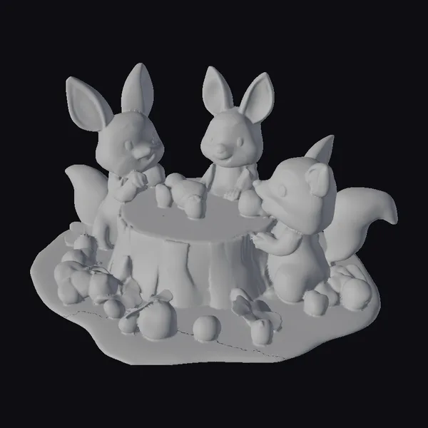 The Model “Woodland Creatures Table Scene” is also available upon request in many other 3D formats, such as 3MF, BLEND, FBX, OBJ, USDZ and others, making it easy to integrate into your project.