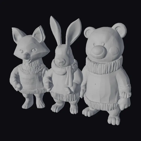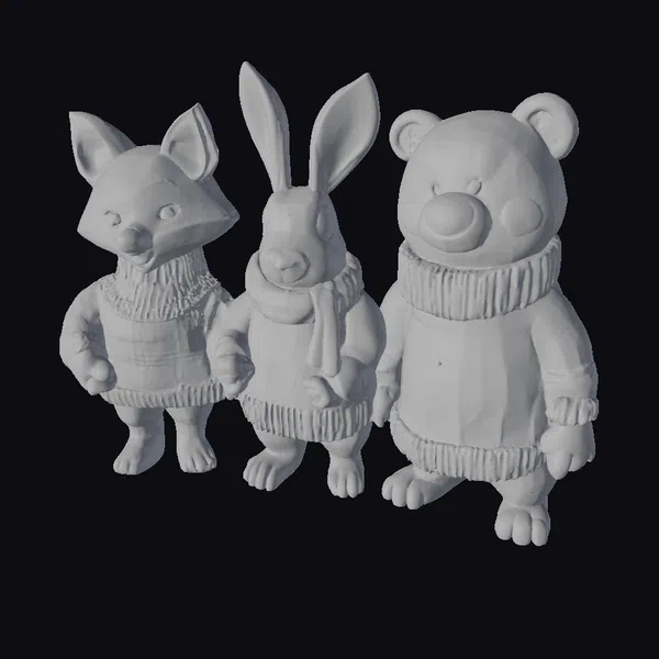 The Model “Woodland Friends in Sweaters” is also available upon request in many other 3D formats, such as 3MF, BLEND, FBX, OBJ, USDZ and others, making it easy to integrate into your project.