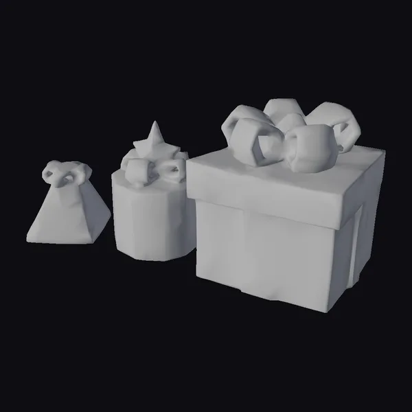 The Model “Wrapped Gift Boxes Trio” is also available upon request in many other 3D formats, such as 3MF, BLEND, FBX, OBJ, USDZ and others, making it easy to integrate into your project.