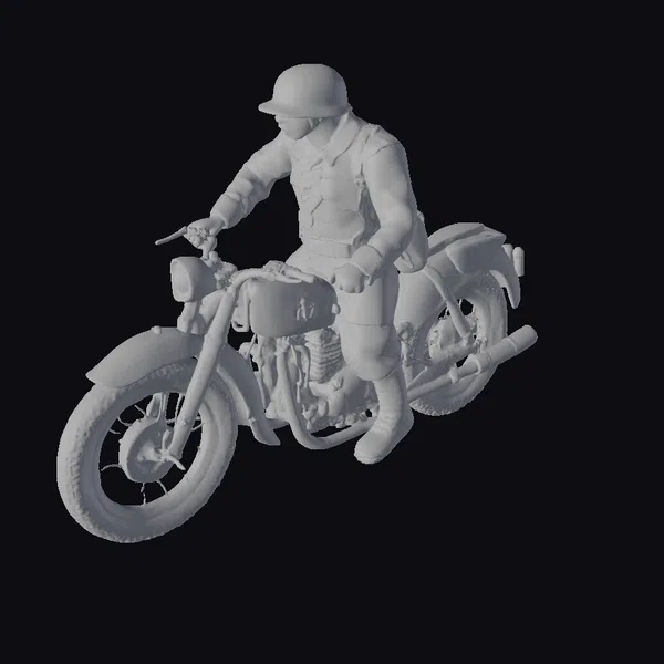 The Model “WW2 Motorcycle Soldier” is also available upon request in many other 3D formats, such as 3MF, BLEND, FBX, OBJ, USDZ and others, making it easy to integrate into your project.