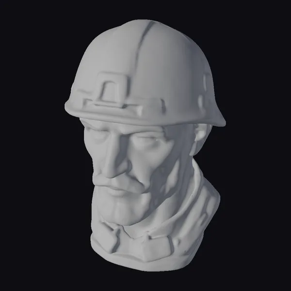 Rendered with meticulous attention to detail, this 3D model of an American WWII soldier’s bust presents a compelling portrait of military resolve. The soldier’s face, set in a determined expression, is framed by a worn steel helmet complete with a star emblem, suggesting a high rank or special unit. The olive green collar of his uniform hints at the broader context of his service. Even lighting accentuates the textures of the helmet and the soldier’s weathered skin, inviting the viewer to explore the subtleties of his expression. Ideal for use in historical projects, educational materials, or as a detailed addition to games and simulations aiming for historical accuracy.