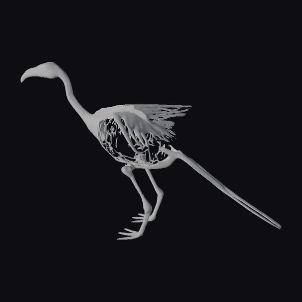 Rendered in a stunningly realistic style, this 3D model presents a bird in mid-stride, its skeletal system intricately superimposed over its body. The transparent skin allows for a detailed view of the bones, muscles, and organs, providing an unparalleled look into avian anatomy. Ideal for educational purposes, filmmakers, and game developers seeking to add a touch of realism to their projects, this model is sure to impress. Its applications range from scientific visualizations and educational materials to animations and virtual reality experiences.