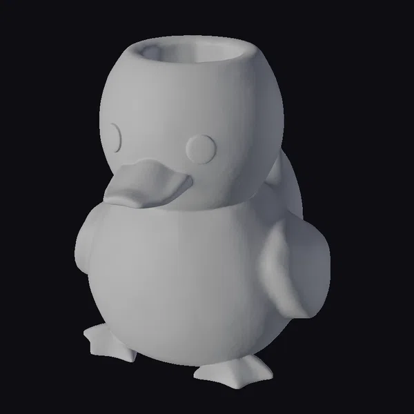 Detailed with precision, this stylized duck planter features a vibrant yellow body, complete with an orange beak and feet, while its belly shines with a metallic silver finish. The model’s pose is dynamic yet stable, resting on its feet with its body slightly angled forward. The large, round eyes are particularly expressive, adding a touch of personality to the design. The top of the duck’s body is hollowed out, making it perfect for holding small plants. This model is ideal for use in interior design projects, animations, or as a quirky decorative piece in games and virtual environments. Its unique blend of functionality and whimsy makes it a standout asset.