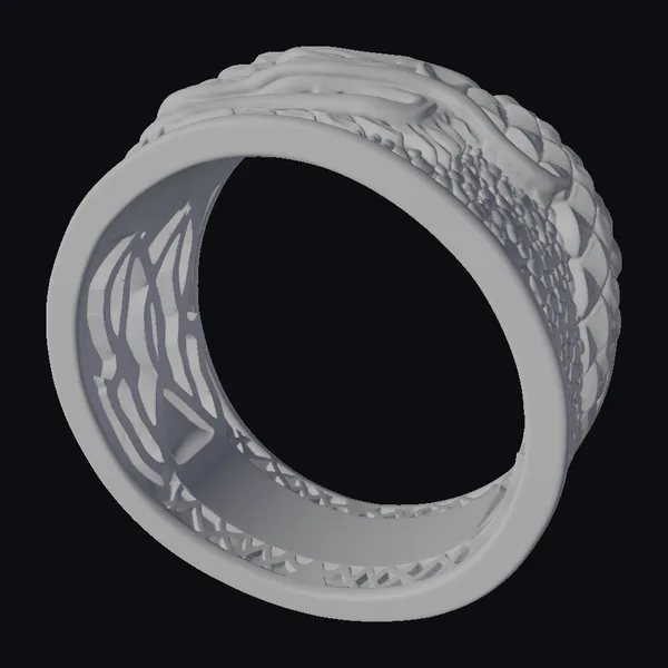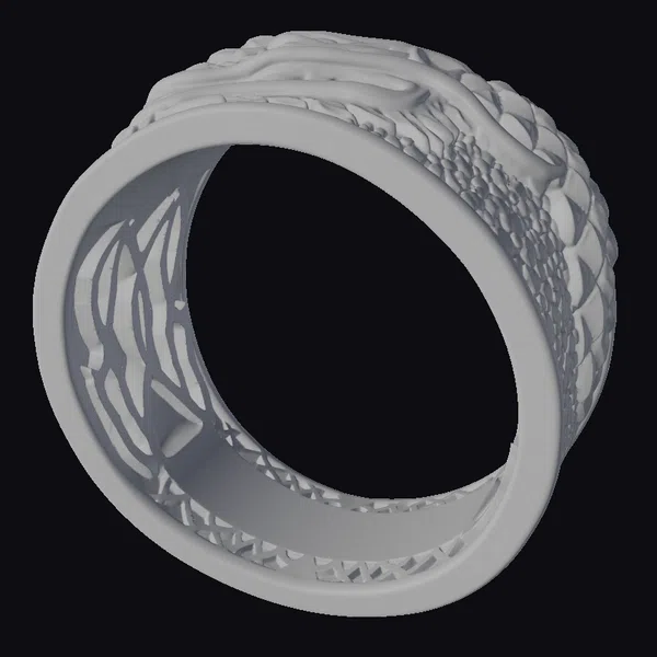Crafted with meticulous attention to detail, this 10K yellow gold ring boasts a substantial presence on the finger. The surface features an ornate design with a black diamond-studded pattern, adding a touch of elegance and refinement. The ring’s thick band and precise texture make it a versatile asset for various applications, from jewelry design and advertising to game development and 3D animation. Its realistic appearance and high level of detail ensure a seamless integration into any project.