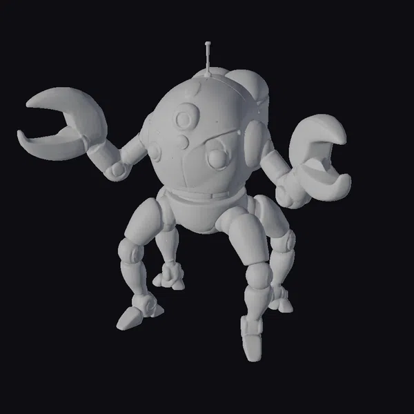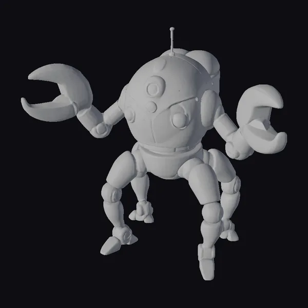 Standing tall with its sharp claws at the ready, this stylized robot guard exudes a sense of futuristic protection. Its yellow and gray striped body is accentuated by glowing yellow eyes and a menacing set of teeth. The robot’s design is detailed with textures that suggest a metallic finish, and its pose conveys a sense of readiness. This model is perfect for projects requiring a sci-fi feel, such as animations, games, or virtual reality experiences.