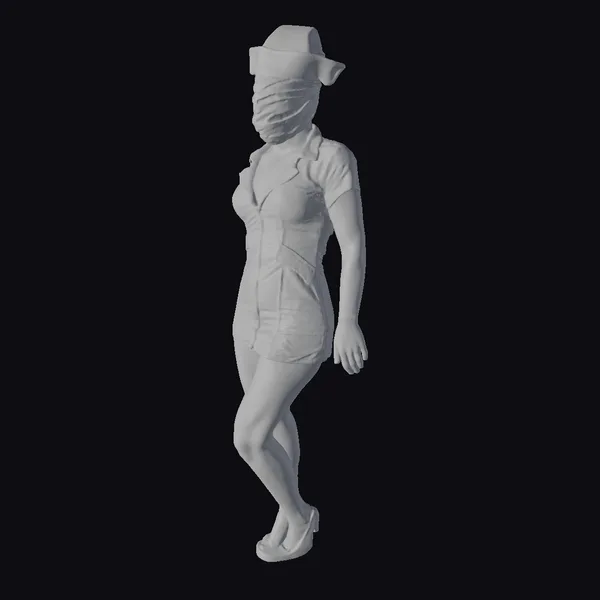Detailed with a focus on simplicity, this stylized nurse character features a vibrant yellow nurse’s dress and hat, complemented by a matching pair of shoes. The outfit is clean and minimalistic, with an emphasis on the bright, sunny color. The character’s pose suggests movement, with one leg crossed over the other in a dynamic stance. The face is partially obscured, adding an air of mystery. This model is perfect for projects requiring a stylized, cartoonish nurse character, suitable for use in animations, games, or as a design element in creative projects.