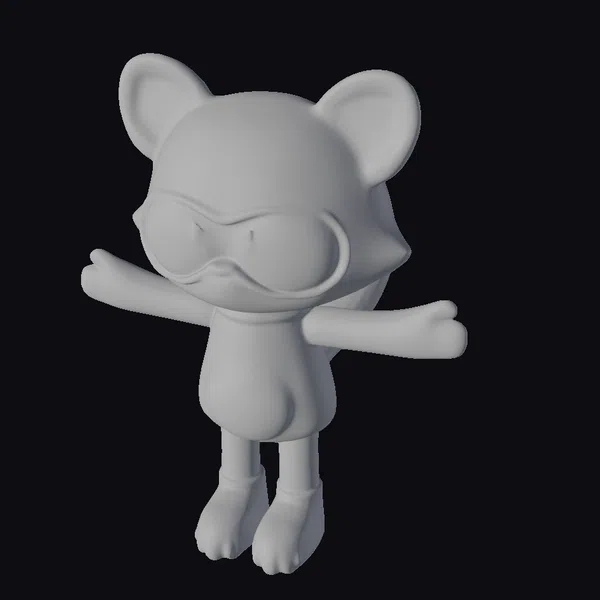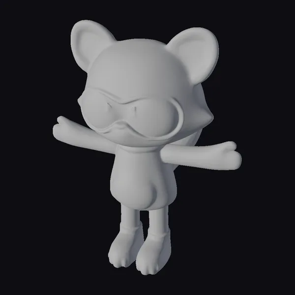Standing with its arms outstretched and legs slightly apart, this yellow raccoon toy exudes a sense of joy and friendliness. Its large, expressive eyes are accentuated by thick, brown outlines, adding to its comedic appeal. The raccoon’s ears are perked up, and its brown boots and inner ear details provide a touch of realism. The model’s smooth, rounded features and bright coloration make it an eye-catching addition to any scene. Whether used in animation, games, or print projects, this raccoon toy is sure to bring a smile to viewers’ faces. Its cute design and lively demeanor make it an excellent choice for projects aimed at a younger audience or those seeking a lighthearted, playful vibe.