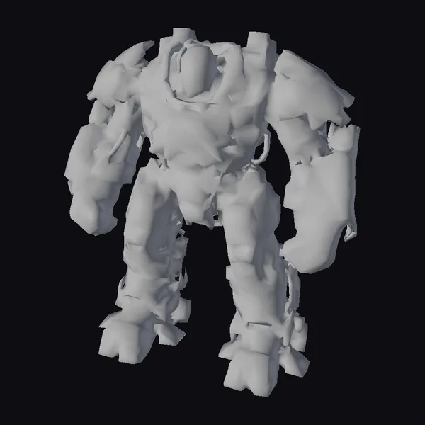 Standing tall with a broad stance, this yellow robot guardian is a marvel of sci-fi design. The model’s body is primarily yellow with significant metallic gray accents, showcasing a complex assembly of mechanical parts. The head is uniquely shaped like a dome, adding to its otherworldly appearance. Its arms hang by its sides, with each hand formed into a solid, clenched fist, suggesting readiness for battle. The robot’s surface is detailed with various panels, vents, and joints, highlighting its mechanical nature. The model is highly detailed, making it suitable for various applications such as game development, animation, and virtual reality experiences.