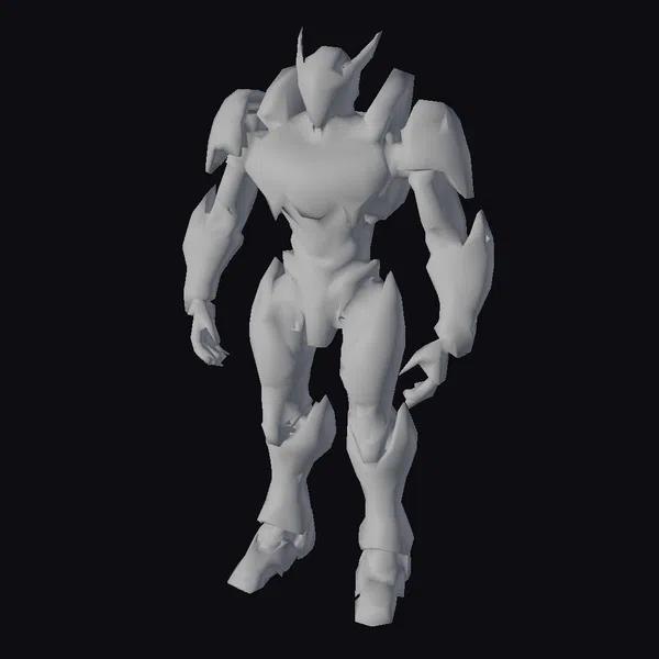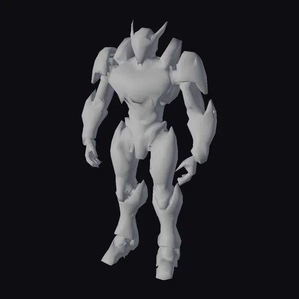 Crafted with meticulous attention to detail, this yellow robot sentinel boasts a dynamic pose that exudes readiness. Its body is a vibrant yellow with gray metallic accents, showcasing a blend of smooth surfaces and jagged edges. The armor plating on its shoulders, chest, and limbs appears both protective and menacing, with sharp protrusions adding to its formidable appearance. The robot’s face is shielded by a helmet with two pointed protrusions, giving it a distinctive and intimidating profile. The intricate design makes it an excellent choice for projects requiring a detailed, sci-fi character. Ideal for use in games, 3D printing, VR/AR experiences, animation, and design projects, this model is sure to capture attention.