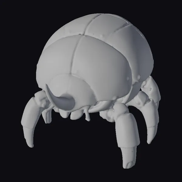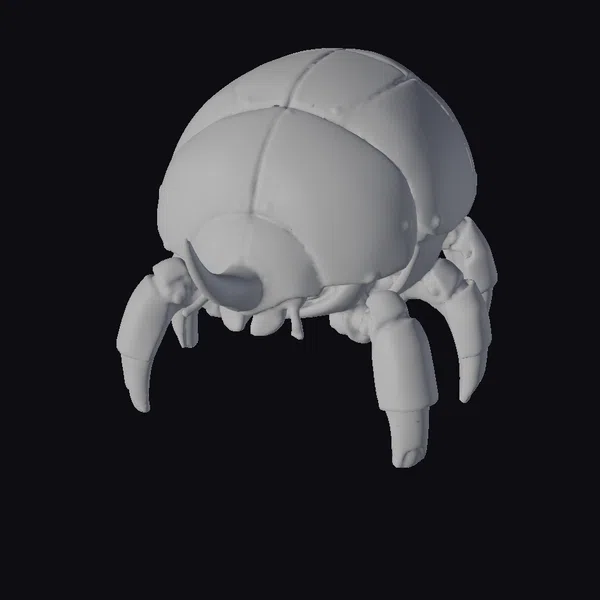 Perched on six sturdy legs, this stylized robotic beetle boasts a bright yellow, rounded body segmented with metallic plates. The armor plating shows signs of wear, with faded decals and scuffed surfaces giving it a battle-hardened appearance. Black and white stripes wrap around its legs, contrasting sharply with the yellow and metal tones of its body. The beetle’s design blends organic and synthetic elements seamlessly, making it a captivating addition to any sci-fi or fantasy scene. Ideal for use in games, animations, or 3D printing projects, this model brings a unique character to your creative endeavors.