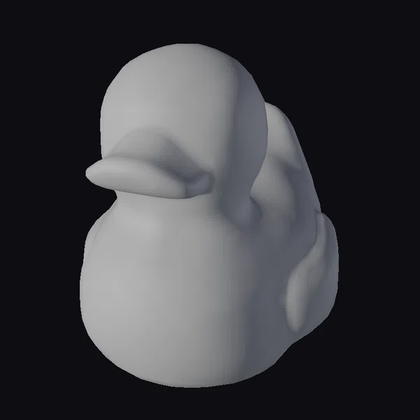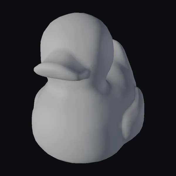 Detailed with a smooth, shiny surface, this stylized rubber duck features a rounded body and a distinctive bright orange beak. Its simple yet charming design includes a small black eye with a white outline, adding to its endearing appearance. The duck’s pose, with its body slightly angled and beak pointing forward, captures a moment of quiet readiness. Ideal for use in 3D animations, games, or as a decorative element in virtual environments, this model brings a touch of whimsy and nostalgia to any scene.