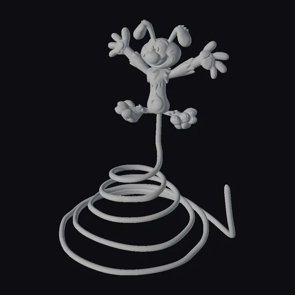 This delightful cartoon dog model showcases a yellow and black spotted creature in mid-jump, supported by a coiled spring that adds a dynamic twist to its playful pose. The dog’s facial features are meticulously detailed, with a broad smile, large expressive eyes, and perky ears that enhance its cheerful demeanor. The model is perfect for animations, games, or any creative project requiring a lively character. Its stylized appearance ensures it stands out, making it suitable for various applications including print, VR/AR experiences, and design projects.