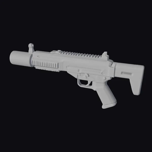 Positioned dynamically against a clean backdrop, the submachine gun boasts a highly detailed, realistic design. Its yellow and black body showcases a weathered finish, complete with scratches and scuffs that add to its battle-hardened appearance. The metallic sheen on the surface catches the light, suggesting a readiness for action. The gun’s sleek lines and ergonomic grip hint at its functionality and ease of use. Ideal for game developers, animators, and designers, this model can bring authenticity to sci-fi settings, action sequences, or military simulations. Its high level of detail makes it suitable for close-up shots or scenes where the weaponry takes center stage.
