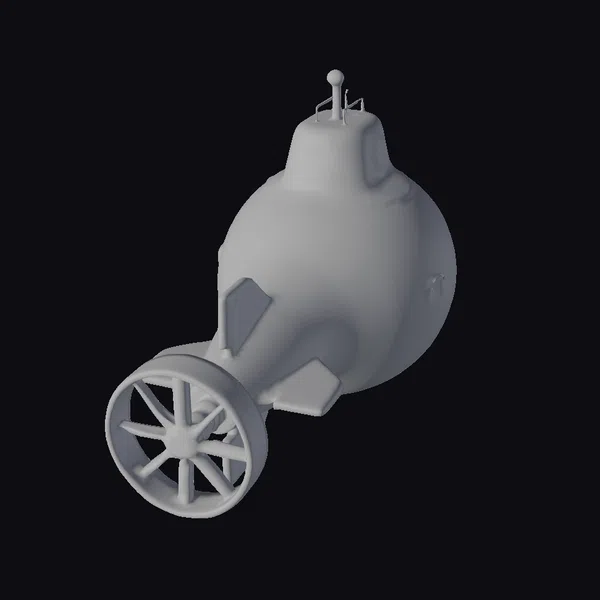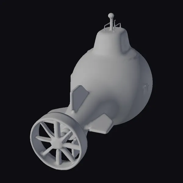 Perched on a sleek gray propeller, this vibrant yellow submarine vehicle boasts a distinctive design that’s equal parts nostalgic and futuristic. The rounded body features a series of curved lines and panels, while the blue windows and small antenna on top add a touch of functionality. The vehicle’s proportions are meticulously detailed, with a sturdy build that suggests a robust presence. Whether you’re creating a game, animation, or architectural visualization, this submarine model is sure to make a splash. Its stylized aesthetic lends itself to a variety of creative applications, from sci-fi epics to fantastical underwater worlds.