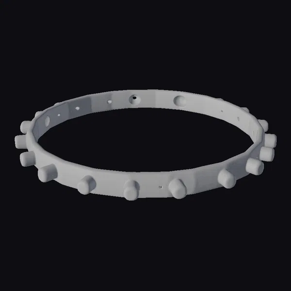 Positioned dynamically against a clean white backdrop, the tambourine’s bright yellow hue takes center stage. The circular frame, slightly tilted to showcase its profile, features pairs of small jingles evenly spaced around its circumference. Crafted with a smooth, shiny plastic texture, the model captures the reflective quality of real tambourines under stage lights. The jingles, small and cylindrical, add a detailed touch that suggests movement and sound. This model is perfect for animations, games, or virtual environments where musical elements are needed. Its realistic design and vibrant color make it a versatile asset for various creative projects.