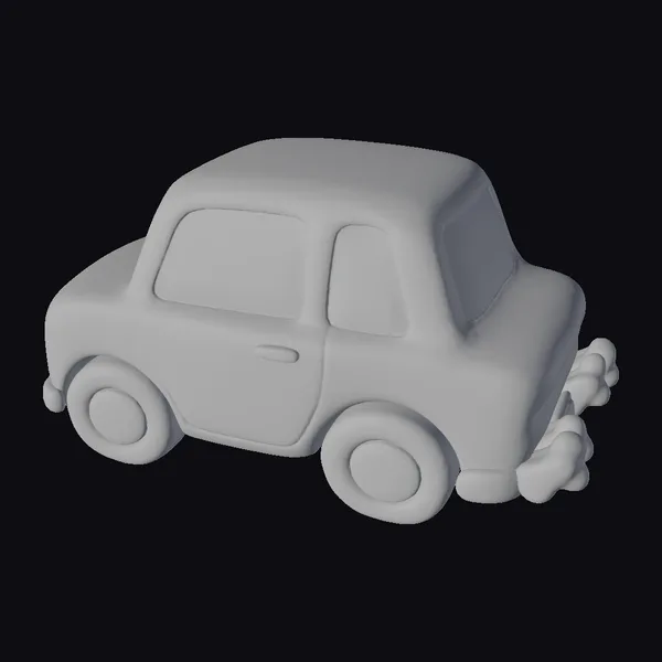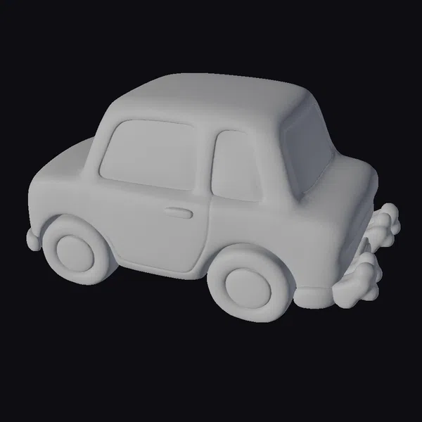 Detailed with a rounded, simplistic design, this 3D model of a toy car showcases a vibrant yellow body with bright blue windows and a playful exhaust pipe that resembles a smiling face. The car features black tires with orange centers and matching orange details on its front and rear bumpers. Its smooth, cartoonish appearance makes it perfect for projects requiring a friendly, approachable feel. Use it in animations, games, or as a decorative element in virtual environments to add a touch of whimsy and fun. The model’s simplicity and charm ensure it will appeal to audiences of all ages.