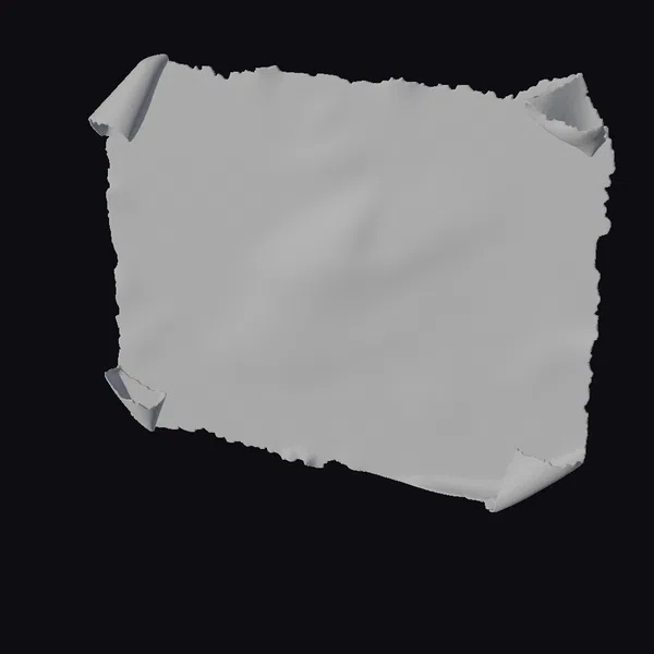 Detailed to perfection, this 3D model of a yellowed parchment paper captures the essence of aged elegance. The corners are delicately curled, and the edges are rough and torn, giving it a rustic feel. The surface, with its subtle texture, appears yellowed with age, and faint French text can be discerned, adding an element of mystery. A couple of ink stains and a small tear further enhance its vintage appeal. This model is perfect for use in historical animations, video games, or any project requiring a touch of the past. Its realistic appearance makes it suitable for high-quality renderings, 3D printing, or virtual reality experiences.
