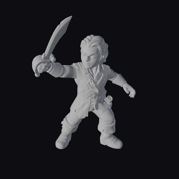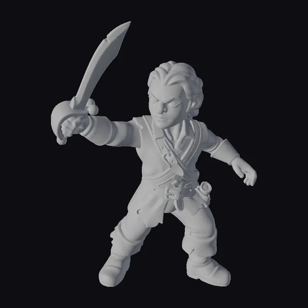 Standing tall with a sword held high, this young adventurer miniature is a marvel of detailed design. The figurine boasts a stylized yet dynamic pose, capturing a moment of anticipation before the battle begins. With a costume that hints at a storied past and accessories that speak of adventures to come, this model is perfect for those looking to add a touch of heroism to their projects. Whether for gaming, animation, or as a collectible, its detailed textures and balanced proportions make it a versatile asset. The model invites you to imagine the stories it could tell, from epic quests to swashbuckling escapades.
