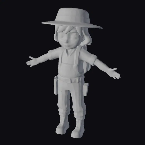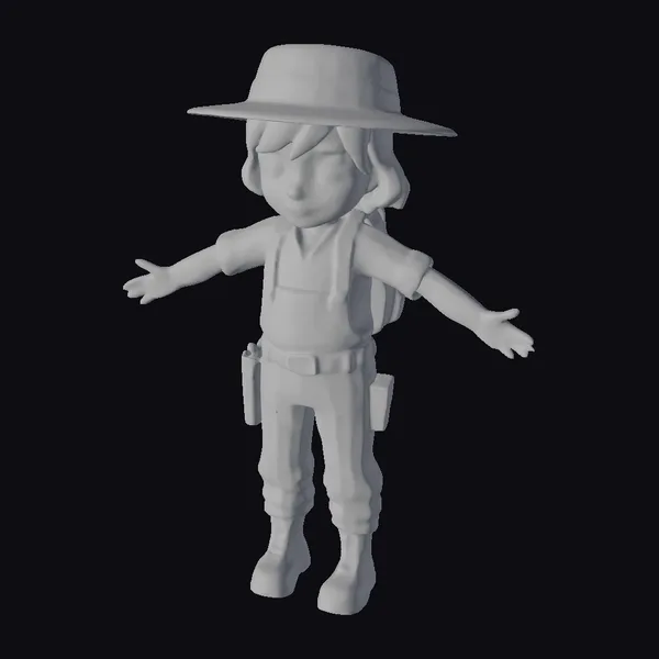 Standing confidently with her arms outstretched, this stylized 3D model of a young farm girl captures a moment of pure joy and readiness for action. Her brown hair peeks out from under a wide-brimmed tan hat, adding to her charming and youthful appearance. The outfit is a perfect blend of functionality and style, featuring blue overalls, a crisp white shirt, and brown boots that are clearly made for walking through fields. A brown belt cinches at her waist, from which a tool holder and backpack straps extend, suggesting she’s prepared for any task that comes her way. The model is meticulously detailed, with textures and lighting that bring out the cheerful mood of the character. Ideal for projects that require a friendly, adventurous spirit, such as animations, games, or virtual reality experiences.