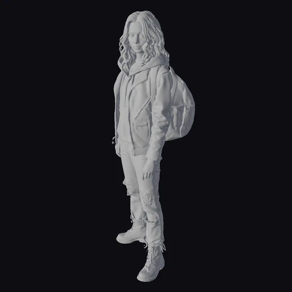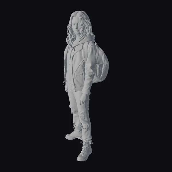 Rendered in exquisite detail, this ultra-realistic 3D model of a young female survivor captures the essence of a post-apocalyptic world. Her long, wavy brown hair cascades down her back as she stands in a relaxed yet vigilant pose, her eyes seeming to assess the surroundings. She wears a faded green jacket with a hood, a white shirt underneath, distressed blue jeans, and brown boots, complemented by a sturdy brown backpack. The model’s realistic proportions, detailed textures, and lifelike facial features make her an ideal choice for projects requiring a character that embodies survival and resilience. Perfect for use in games, animations, VR/AR experiences, and designs that demand a character with a story.