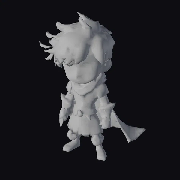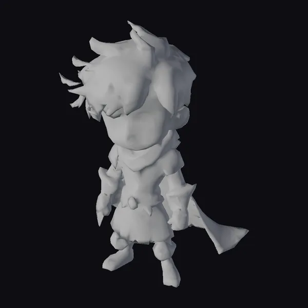 Standing confidently with his feet shoulder-width apart, this young knight model exudes a sense of readiness and courage. His silver armor, adorned with gold accents, covers his torso, arms, and legs, while a brown belt cinches at his waist, adding a touch of earthiness to his ensemble. The blue cape flows behind him, its edges fluttering as if caught in the wind, adding a dynamic element to his pose. The model’s facial features are exaggerated in a chibi style, with large eyes that sparkle with determination and a small nose and mouth that suggest a resolute spirit. The texture of the armor, the weave of the cape, and the tousled hair are all rendered with high detail, making this model suitable for a variety of applications, from animation and game development to print and virtual reality experiences.