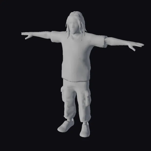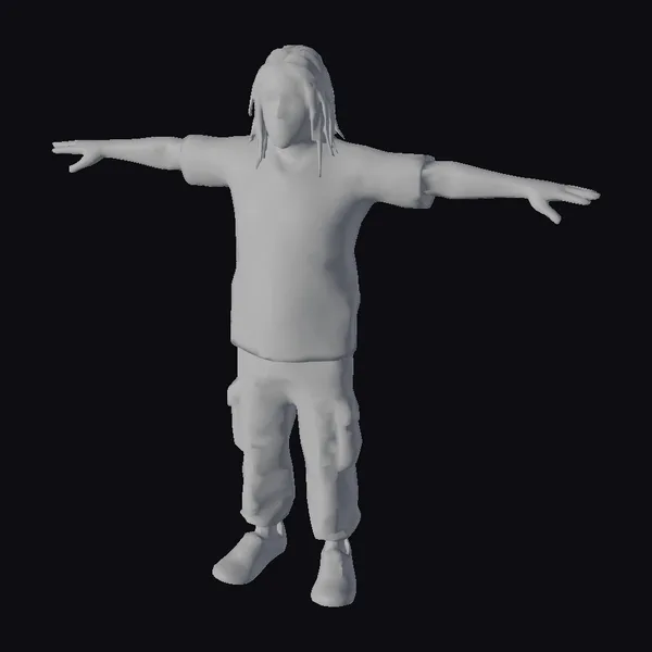 Standing with arms outstretched, this 3D model of a young man showcases a casual, eco-conscious fashion sense. His green T-shirt and cargo pants are made from recycled materials, reflecting a commitment to sustainable living. The model’s dreadlocks are meticulously detailed, adding texture and depth to his character. The overall pose and expression convey a sense of openness and approachability. This model is ideal for use in projects related to sustainable fashion, eco-friendly products, or environmentally conscious campaigns. Its realistic style ensures a high level of detail and accuracy, making it suitable for various applications, including games, animations, and virtual reality experiences.