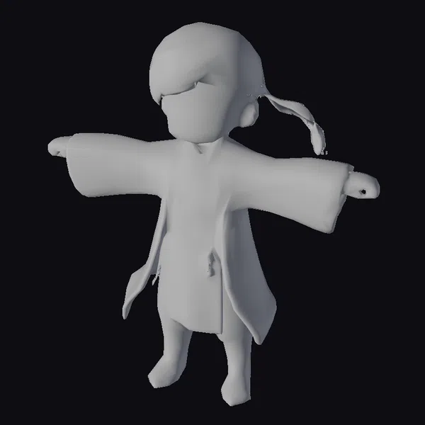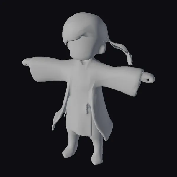 In a dynamic pose, the young sword bearer stands with arms outstretched, exuding a sense of readiness. His white robe features intricate blue designs on the sleeves and hem, complemented by a matching blue sash around his waist. The white headband tied around his dark hair adds a touch of elegance to his determined expression. This stylized model is perfect for use in games, animation, or 3D printing, offering a unique and captivating character design. The detailed textures and vibrant colors bring this young warrior to life, making him an excellent addition to any project.