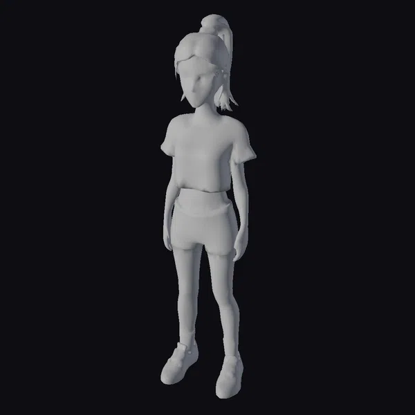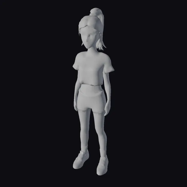Standing with her feet shoulder-width apart, this young woman exudes a sense of casual confidence. Her dark hair is styled in a high ponytail with a pink scrunchie, complementing her outfit and adding a pop of color. The ultra-detailed body and high-definition face ensure that every feature, from the texture of her skin to the expression on her face, is rendered with stunning clarity. Her skimpy white t-shirt and gray shorts reveal just enough to suggest a dynamic and active lifestyle, while her trainers and socks add a sporty touch. The realistic style of this model makes her suitable for a wide range of applications, from video games and animation to virtual reality experiences and architectural visualizations. Whether you’re looking to populate a scene with believable characters or create a protagonist with depth, this young woman’s detailed and dynamic model is an excellent choice.