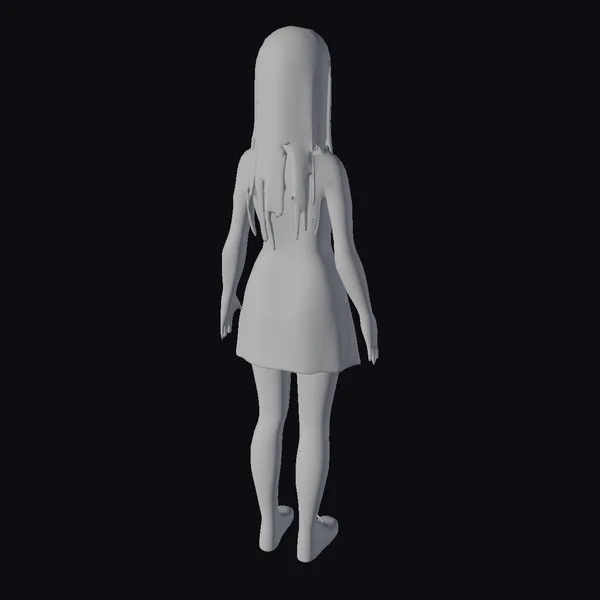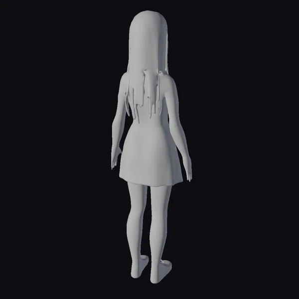This meticulously crafted 3D model presents a young woman with a serene expression, her long black hair falling straight down her back, cut with bangs that frame her face. She wears a blue and white shirt paired with a detailed white apron, standing barefoot in a relaxed A-pose. The model’s realistic appearance, complete with subtle skin tones and detailed clothing textures, makes it an excellent choice for various applications, including games, 3D printing, virtual reality (VR), augmented reality (AR), animation, and design projects. The model’s pose and expression convey a sense of calmness and readiness, suitable for scenarios requiring a human character with a gentle demeanor.