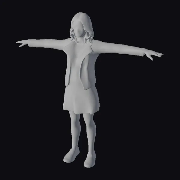 Detailed down to the stitching on her jacket and the texture of her sneakers, this highly realistic 3D model of a young woman in a T-pose is perfect for animation, game development, or architectural visualization projects. Her facial expression is neutral, making her a versatile character for a wide range of applications. The model includes a white floral dress with a subtle sheen, a black leather jacket with visible zippers and seams, and white sneakers with laces. Her dark blonde hair is shoulder-length and slightly wavy, adding to her realistic appearance. Whether you’re creating a scene that requires a character to interact with their environment or simply need a detailed human model for reference, this asset is ideal.
