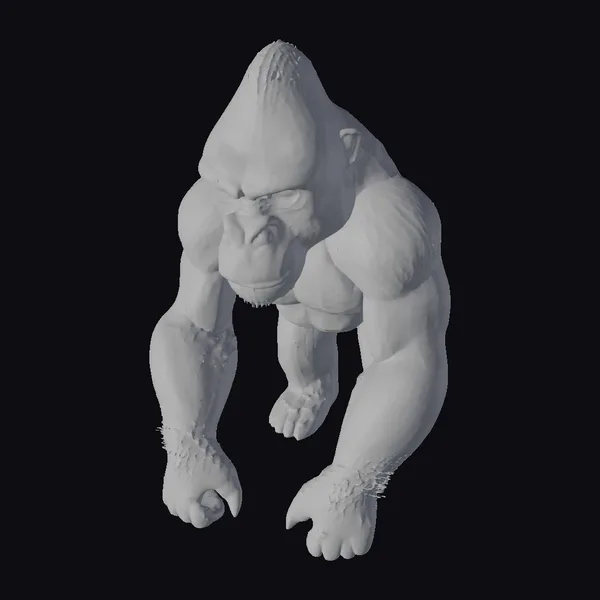 Standing with a powerful stance, this zebra-skinned gorilla commands attention with its imposing presence. The detailed textures of its fur and skin are accentuated by the dramatic lighting, highlighting the muscular definition and sharp claws. The zebra stripes add a unique twist to the traditional gorilla appearance, making this creature a standout in any fantasy or sci-fi setting. Ideal for use in games, 3D printing, VR/AR experiences, animation, and design projects, this model offers endless possibilities for creative expression.