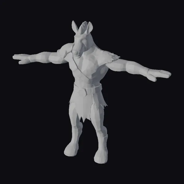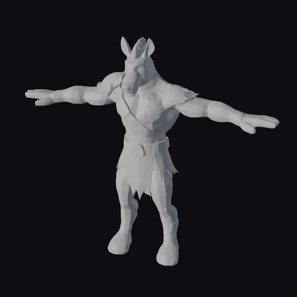 Detailed from head to toe, this zebra warrior 3D model showcases a dynamic pose with outstretched arms, highlighting its impressive physique. The zebra’s head features a short, spiky mane and realistic details, while the body is covered in black and white stripes. Leather accessories, including a belt with a large metal buckle, shoulder pads, gloves, and boots, add a touch of ruggedness. The model’s high level of detail makes it perfect for use in games, animation projects, 3D printing, or virtual reality experiences. Its unique blend of animal and human characteristics makes it an eye-catching addition to any project.