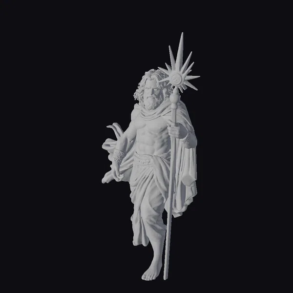 In a dynamic pose, Zeus exudes authority and strength. His gray hair flows like the clouds he commands, and his beard frames a determined expression. The model showcases intricate details such as the texture of his skin, the folds of his cape, and the golden accents on his staff and accessories. The stylized approach enhances his mythological attributes, making him a compelling addition to any project, whether it’s for animation, game development, or architectural visualization. His depiction as a storm god, capable of summoning the fury of the skies, is encapsulated in this detailed model.