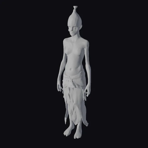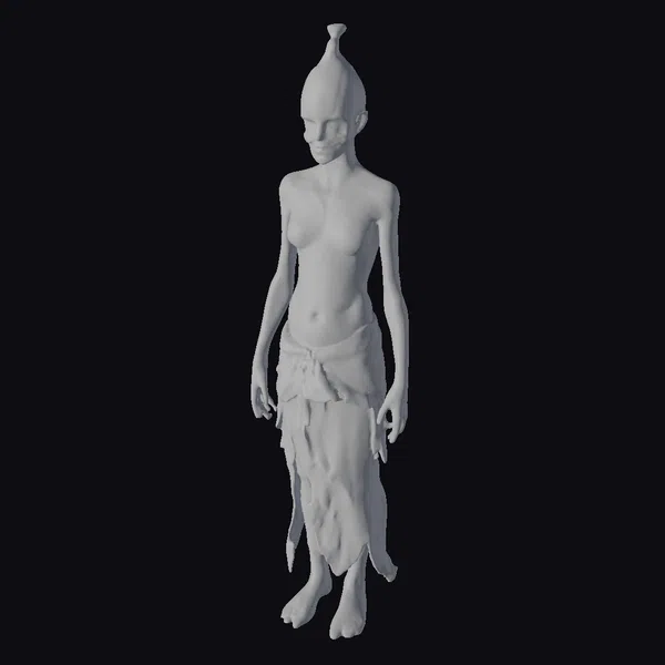 Standing tall with a slightly curvy form, this zombie-banana hybrid commands attention. Its banana-like torso and head are juxtaposed with grayish-green zombie skin, complete with exposed red innards and a menacing grin. The model’s tattered yellow cloth, tied around its waist, adds to its post-apocalyptic charm. Glowing eyes seem to pierce through any environment, making it perfect for dark, fantasy, or horror-themed projects. Use it in games, 3D print, VR/AR experiences, animations, or designs to add a touch of the macabre.