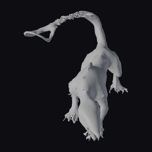 Detailed to perfection, this zombie dinosaur model showcases a mesmerizing blend of horror and fantasy. Its pose, frozen in mid-roar, captures the raw power and ferocity of a creature risen from the dead. The sketch-like texture lends an air of artistic interpretation, with bold lines and shading that evoke a sense of dynamic movement. The model’s gray tones are offset by hints of darker shading, suggesting the presence of wounds and decay. This model would be perfect for use in games, animation projects, or 3D printing, where a touch of the macabre is desired. Its unique blend of monstrous and dinosaur features makes it a standout addition to any project.