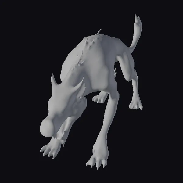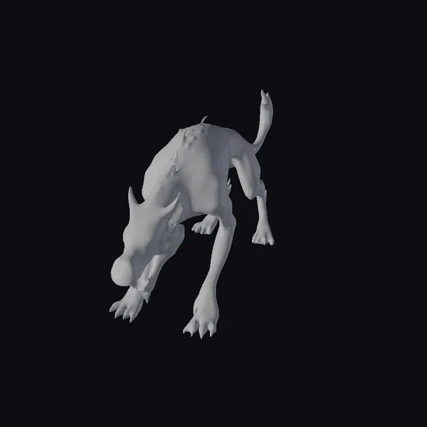 This zombie dog 3D model captures the terrifying essence of an undead canine, its body contorted in a menacing lunge. The model’s detailed textures reveal a mass of dark, mottled fur with visible wounds and exposed flesh around the jaw and legs. The dog’s eyes glow with an eerie yellow light, adding to the unsettling atmosphere. Its sharp claws and teeth are on full display, making it a formidable creature for any horror or fantasy scene. Use it in games, animations, or designs to evoke a sense of fear and dread.