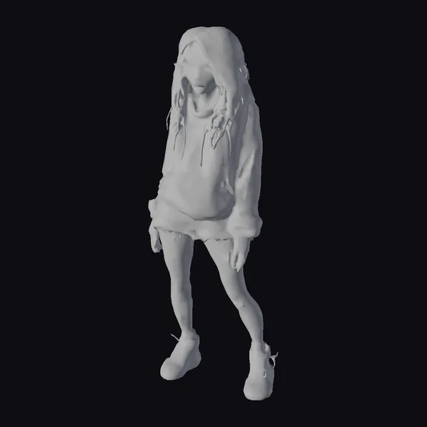 Standing with a slightly off-balance posture, this stylized zombie girl exudes a chilling yet fashionable vibe. Her pink hoodie and sneakers are meticulously detailed, contrasting starkly with the bloody lesions on her legs and the tattered state of her shorts. The model’s pink hair cascades down her back in tousled locks, framing a face that blends scary and stylish. Her eyes seem to hold a vacant stare, adding to the horror element. This model’s unique blend of style and gore makes it perfect for projects requiring a character that stands out, whether in games, animation, or design. The detailed textures and realistic lighting enhance its usability across various platforms.