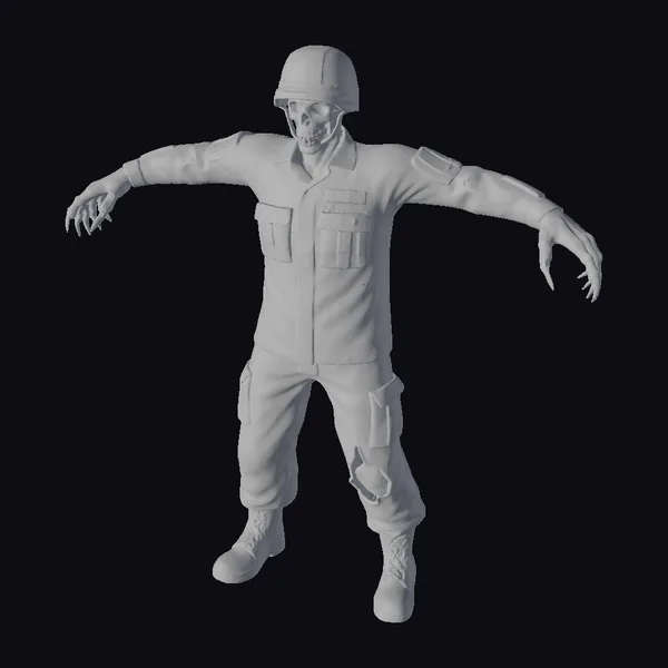The Model “Zombie Military Soldier” is also available upon request in many other 3D formats, such as 3MF, BLEND, FBX, OBJ, USDZ and others, making it easy to integrate into your project.