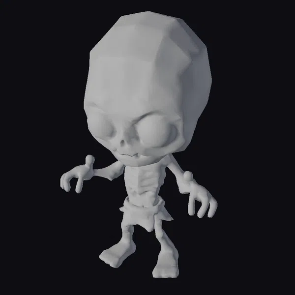 Standing with an air of awkwardness, this zombie pop figurine boasts an unmistakable charm. Its greenish hue and skeletal frame are offset by a tattered purple garment around its waist, adding a touch of whimsy. The large, dark eyes seem to hold a hint of mischief, while the yellowed teeth contribute to its endearingly gruesome appearance. Crafted in a stylized, cartoonish style, this figurine is perfect for those who appreciate a blend of humor and horror. Its detailed texture and pose make it suitable for various applications, including game development, animation projects, or even 3D printing. The figurine’s design ensures it can be used in a variety of contexts, from digital environments to physical collectibles.