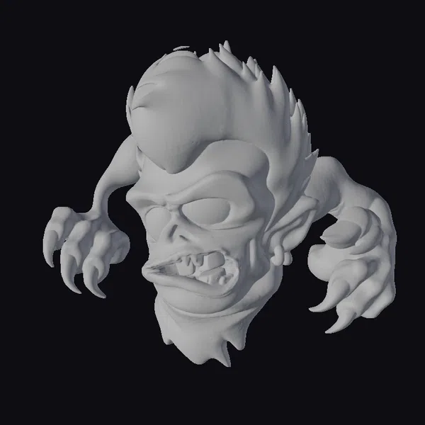 Detailed with a wild shock of dark hair styled upwards, this zombie’s green skin is speckled with dark spots, enhancing its undead appearance. The eyes glow with an eerie light, while the mouth is open, revealing jagged teeth. A tattered gray collar and exposed flesh on the face and arms contribute to the grotesque yet fascinating character design. Ideal for use in horror-themed games, animations, or as a striking decorative piece, this model promises to add a jolt of fear and fun to any project.