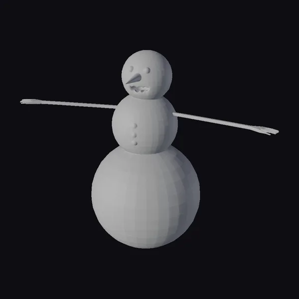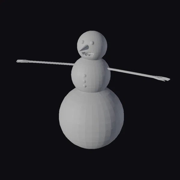 Standing eerily upright, this zombie snowman exudes an aura of macabre whimsy. Its body, a stack of three snowballs, shows signs of decay with dark splotches and yellow-green patches. The middle snowball features a scattering of black dots, while the bottom one appears to be melting, revealing yellow spots underneath. The snowman’s face, once cheerful, now sports glowing orange eyes and a purple, toothy grin. Black, twig-like arms stretch out from its sides, completing the unsettling appearance. This model is perfect for projects requiring a touch of dark fantasy or horror elements, such as game environments, animations, or 3D printed decorations.