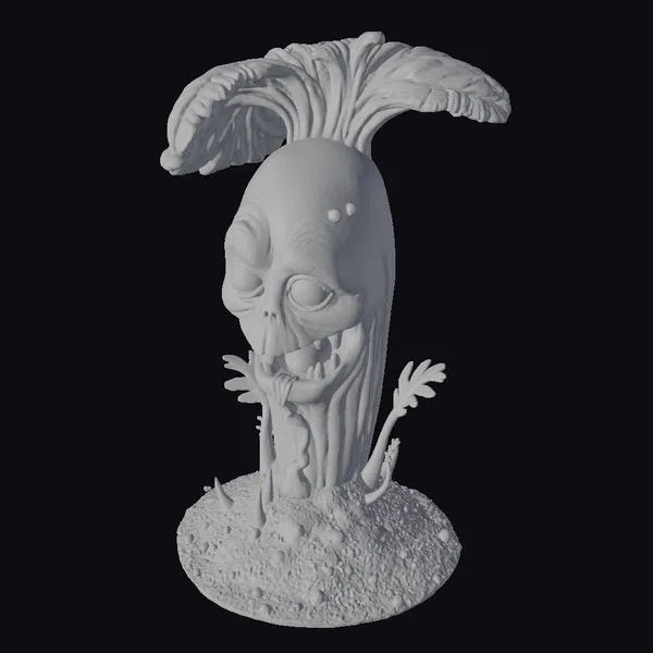 In a burst of eerie vitality, the zombie vegetable emerges from the ground, its leafy greens quivering with an unnatural energy. The model’s intricate details leap into focus: the texture of the soil, the glistening dew on the vegetable’s skin, and the eerie glow of its eyes. This cartoonish creation is perfect for adding a touch of dark whimsy to games, animations, or VR/AR experiences. Its unique blend of humor and horror makes it an eye-catching addition to any project.