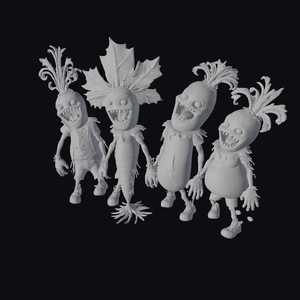 The Model “Zombie Vegetable Squad” is also available upon request in many other 3D formats, such as 3MF, BLEND, FBX, OBJ, USDZ and others, making it easy to integrate into your project.